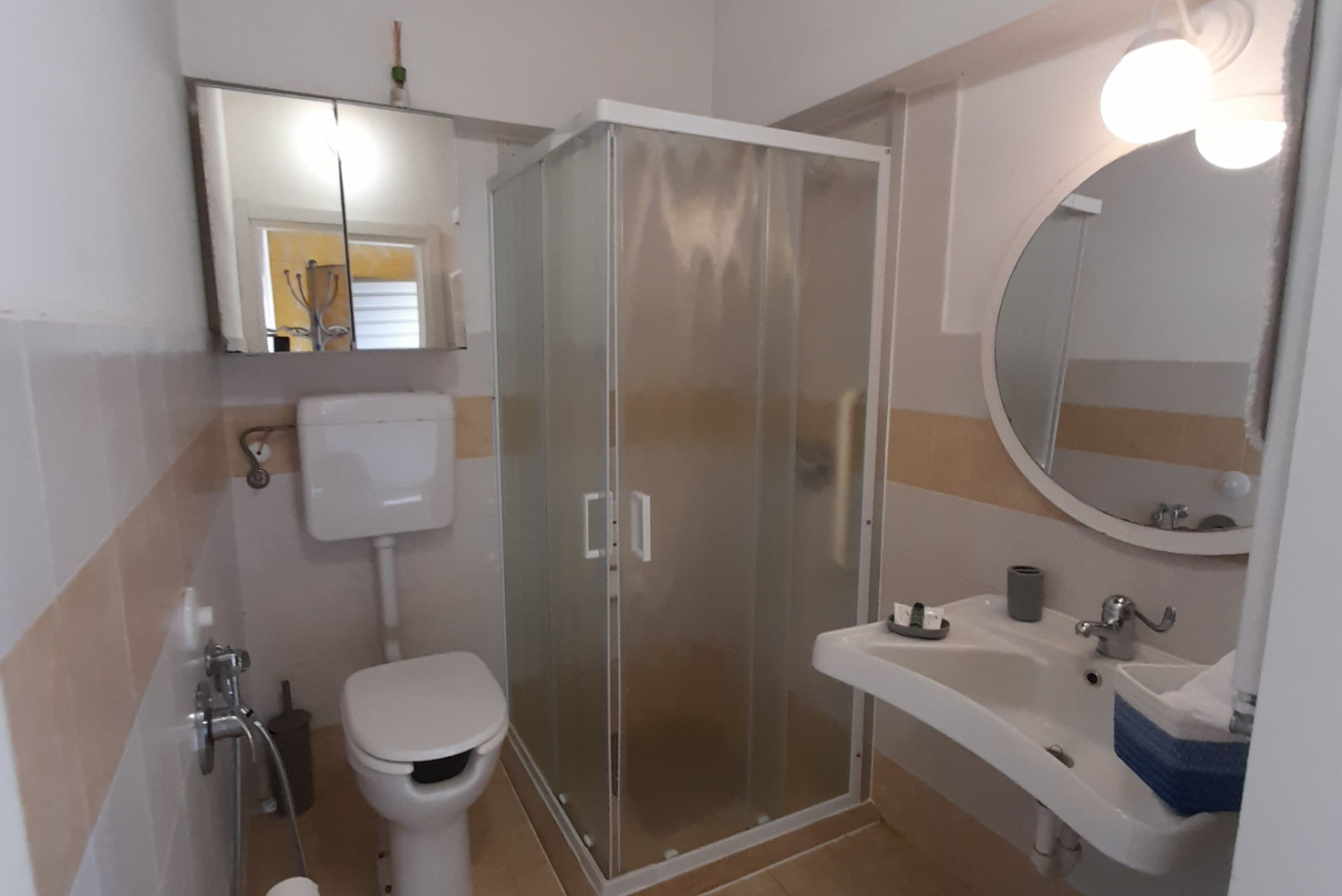 Con bagno privato dotato di servizi per invalidi asciugamani, asciugacapelli e kit di cortesia ,doccia , e wc con bidet incorporato.